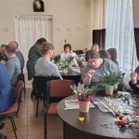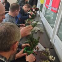 теплицях, висаджування, зріз та про висушування рослин. Для кожного вчителя були підготовлені набори з різних видів сухоцвітів, гілочок ялини, шишок та іграшок. Наталія Дмитрівна вказувала назву рослини та послідовність вставлення в декоративний бокс. Проведений майстер-клас став прикладом ефективного поєднання педагогічної майстерності та творчого підходу до організації уроків трудового навчання. Учителі не лише опанували нові техніки роботи з природними матеріалами, а й отримали практичні ідеї, які зможуть використати у власній професійній діяльності.